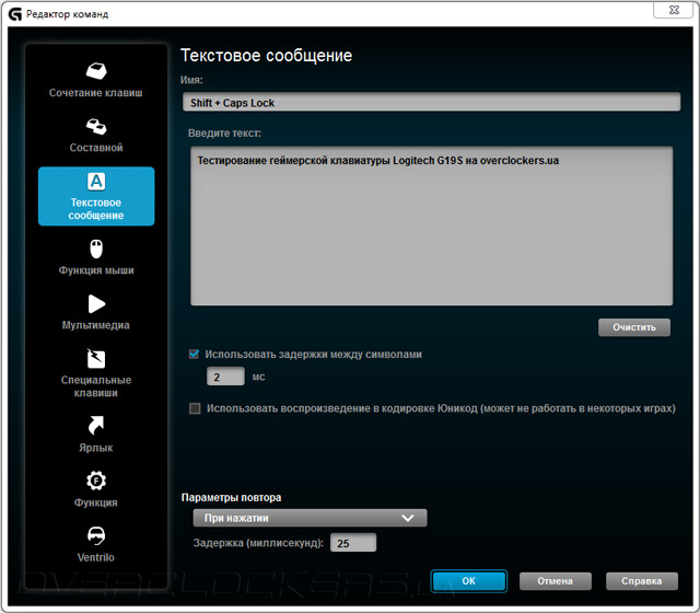 - «Текстовое сообщение» — создание фрагмента текста, который будет набираться при нажатии клавиши;