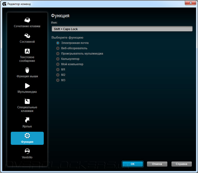 - «Функция» — программирование действия по типу функциональной клавиши Microsoft;