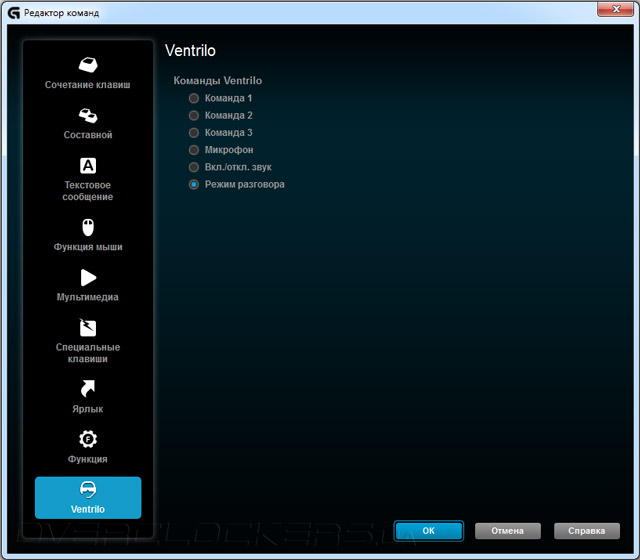 - «Ventrilo» — назначение действия/функции клиента Ventrilo.
