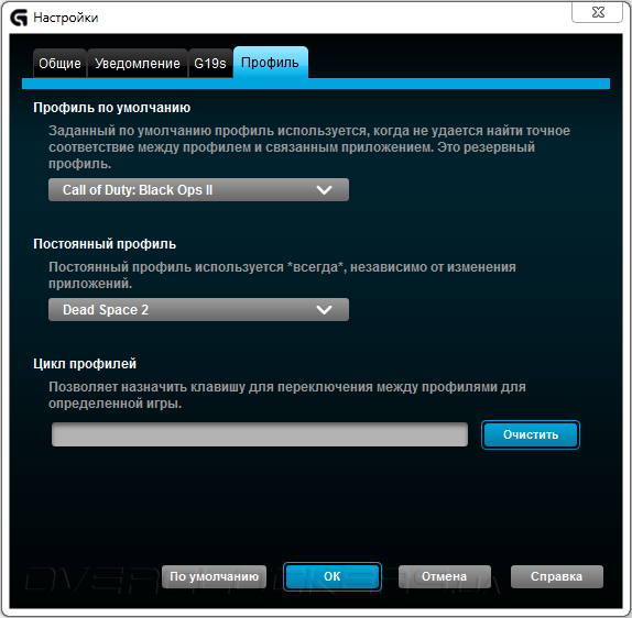 - Profiler — позволяет выбрать другой профиль G-Series, например, при переходе к другой игре;