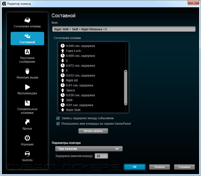 - «Составной» — назначение последовательности сочетаний кнопок в виде макроса с учетом временных задержек;