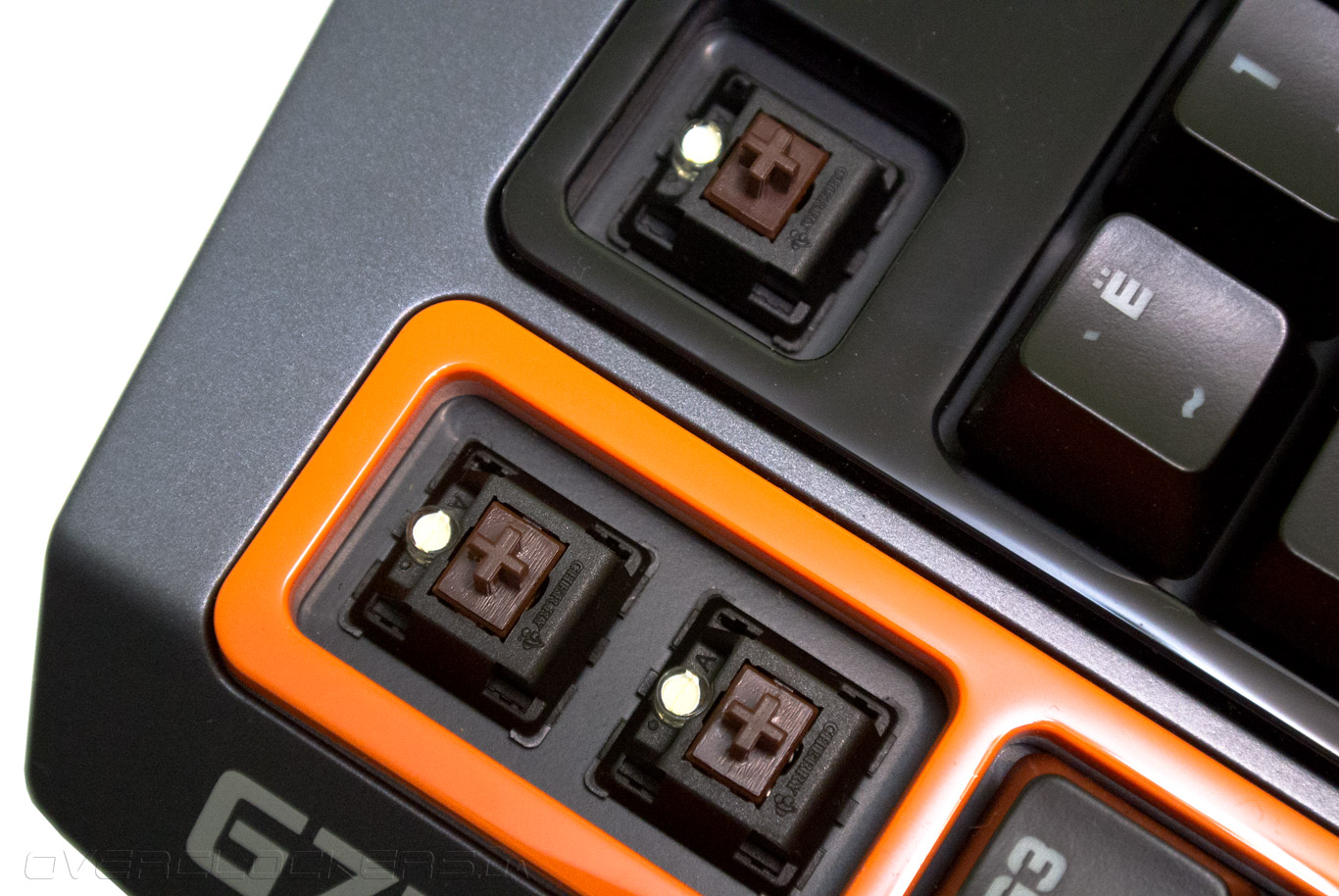 Механические переключатели Cherry MX Brown установлены в основном и цифровом блоках клавиш. Также данные свитчеры используются в программируемых G-клавишах.