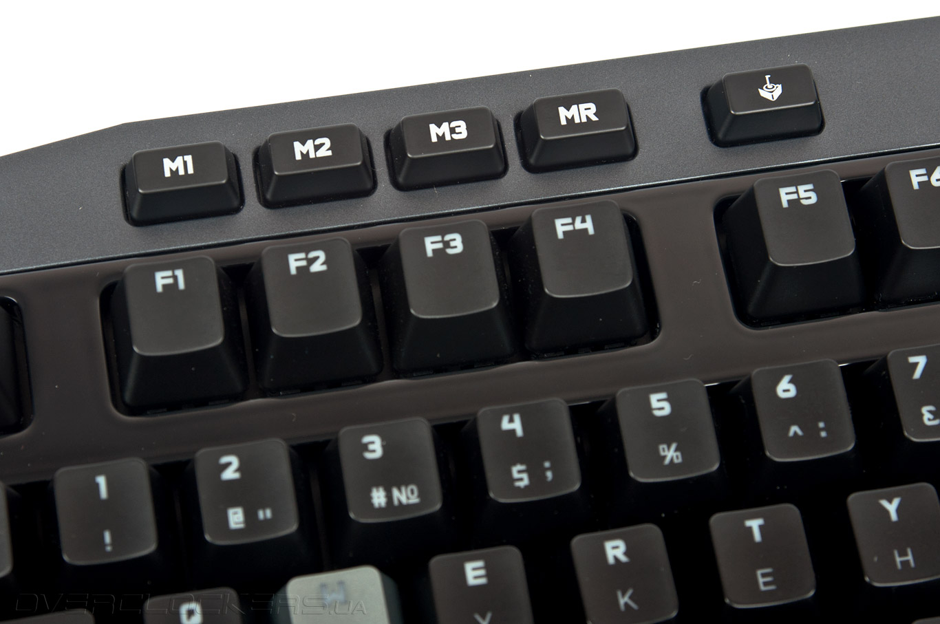 Переключатели режимов макро-клавиш M1–M3 расположены в верхней части лицевой панели. Отдельно вынесена кнопка записи макросов — MR.