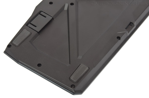 Рубленые линии корпуса создают эффект агрессии, который визуально просто нельзя не заметить. Для размещения всех дополнительных элементов на лицевой панели, инженерам пришлось значительно увеличить размеры корпуса. Сама по себе клавиатура большая. Габариты устройства без подставки под запястье составляют 50,5х15,5х2,5 см, с подставкой — 50,5х22х2,5 см.