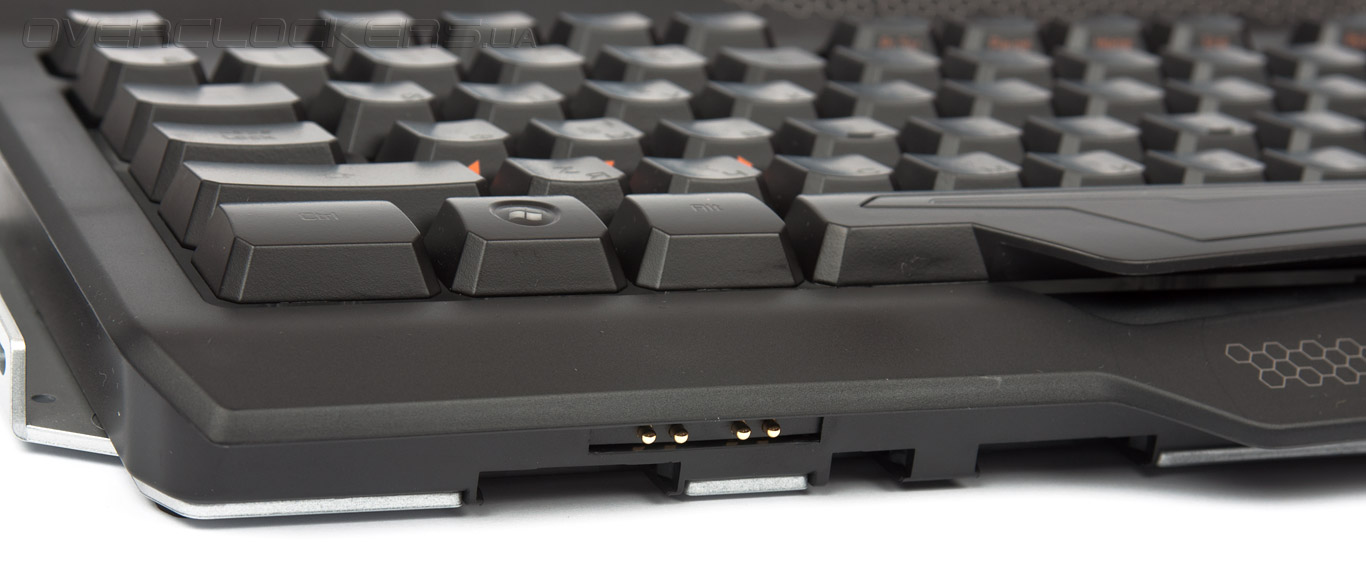 Установить дополнительный модуль справа от цифрового блока клавиш не удастся по причине отсутствия соответствующих креплений. В нижней части днища также находятся специальные разъёмы для установки подставки под ладонь.