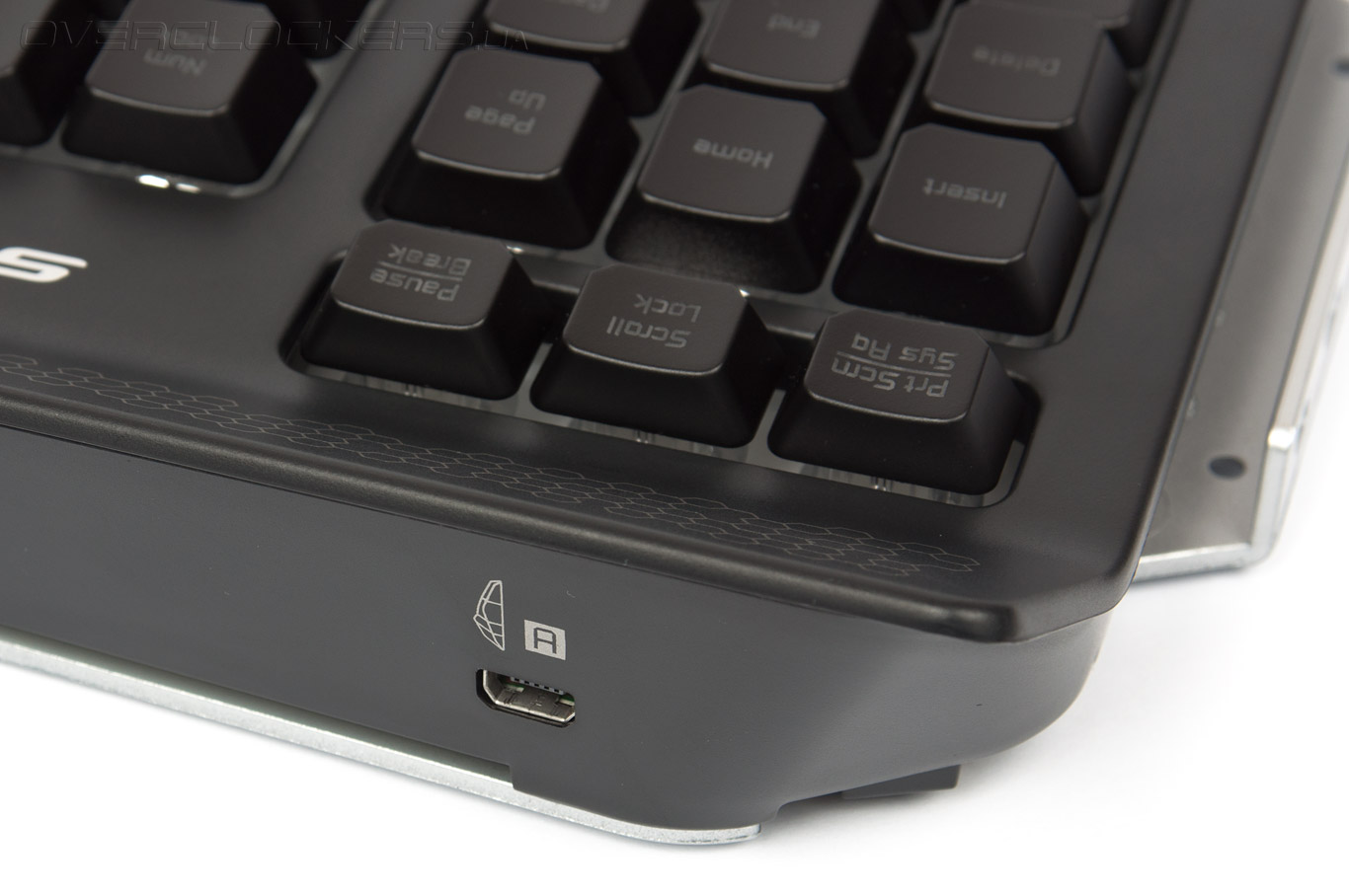 Дополнительный контраст и насыщенность подсветки привносит светлая подложка, находящаяся под кнопками. Свет диодов попадает на эту пластину и равномерно распределяется по всему периметру. К аналогичному решению прибегли инженеры компании Razer, разрабатывая обновлённую версию BlackWidow Ultimate 2013. Программируемые кнопки модуля E.Y.E. имеют независимую подсветку, диоды светятся только белым цветом.