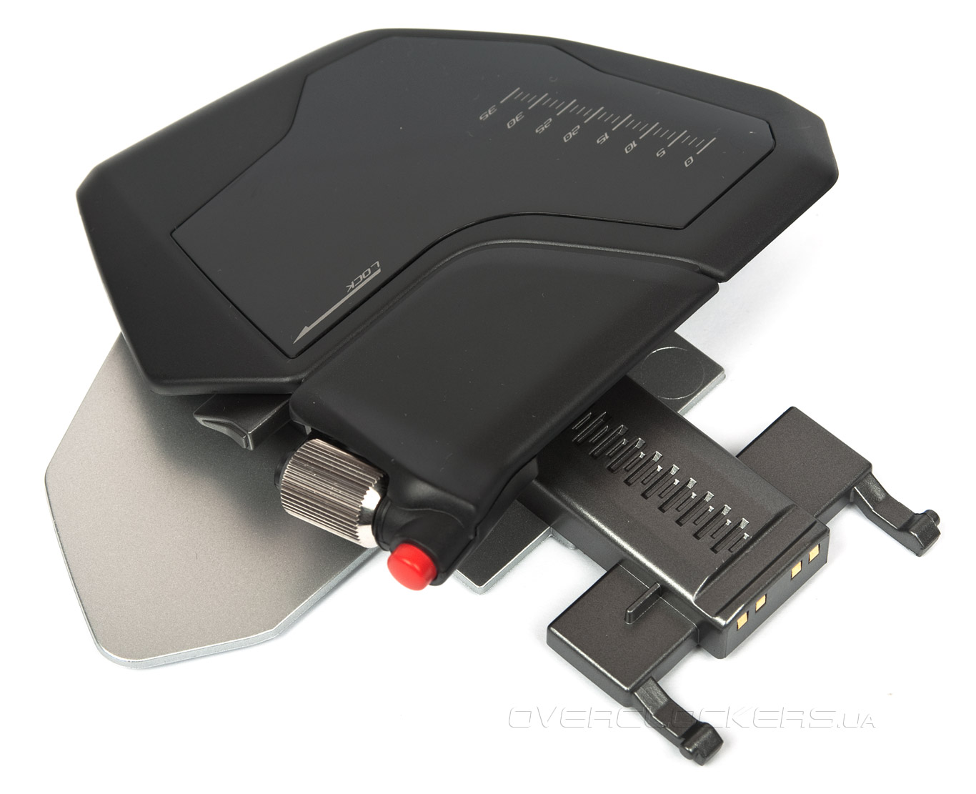 Разработчики позаимствовали у манипуляторов R.A.T. один из интересных элементов управления — вертикальное колесо прокрутки Thumb Wheel. Металлический барабан закреплён на месте упора большого пальца правой руки. На краю подставки есть дополнительная кнопка Action Button красного цвета.