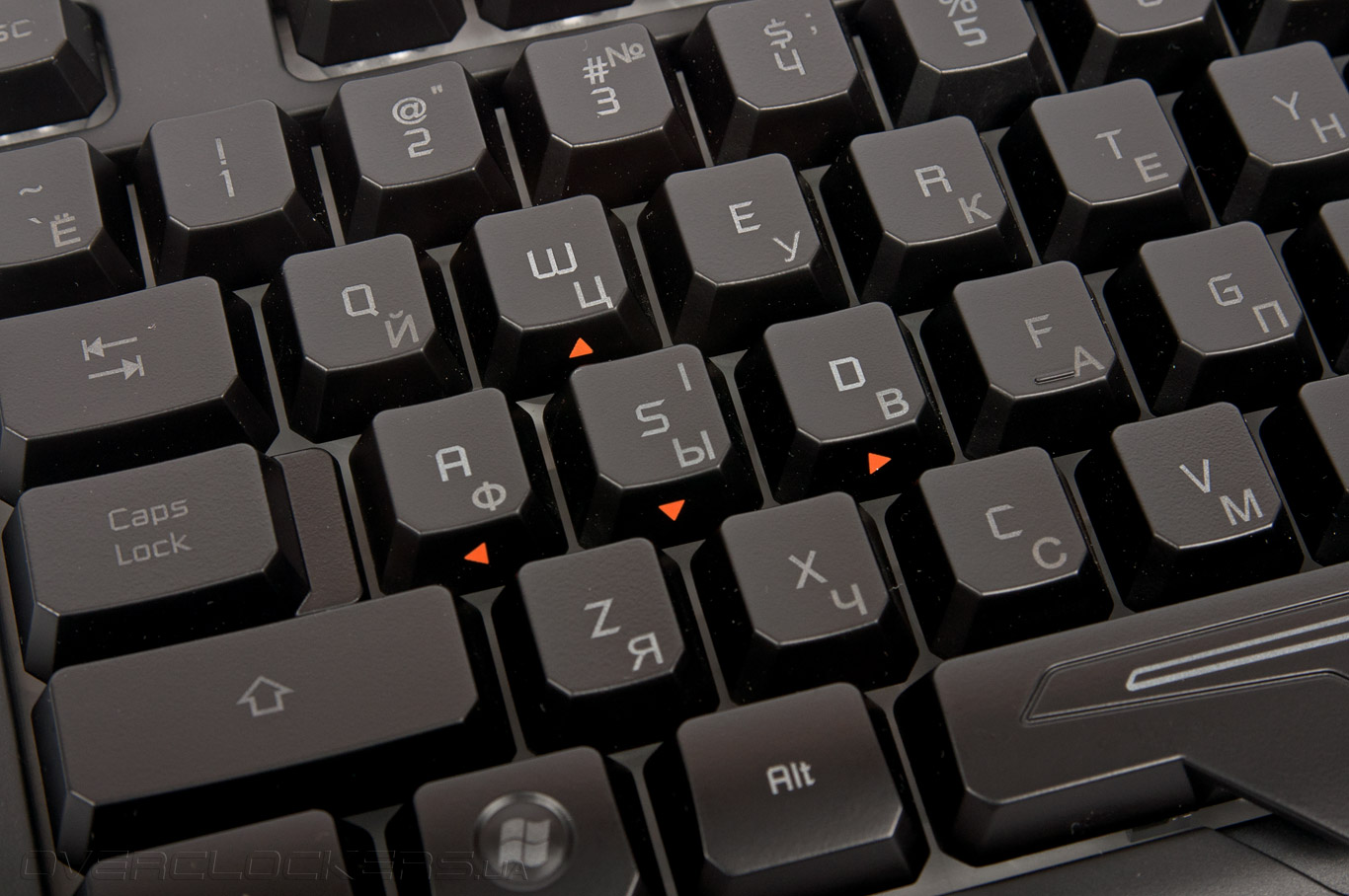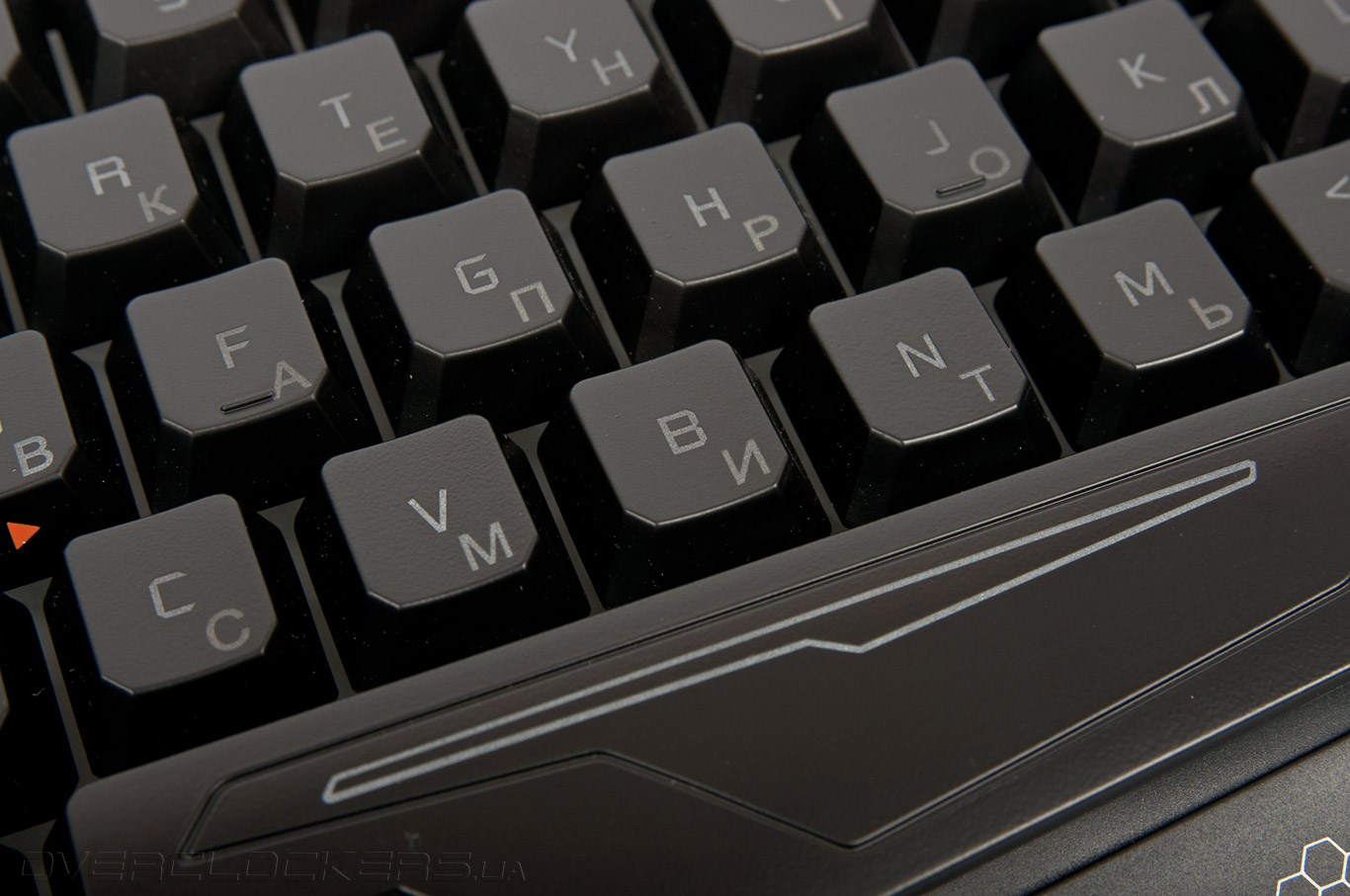Форма клавиши пробела не совсем стандартная и в большей мере является частью оформления устройства в футуристическом стиле. Часто используемые геймерами кнопки WASD выделены миниатюрными треугольниками, указывающими направление. Окрашены они в ярко оранжевый цвет с той целью, чтобы пользователь смог быстро сориентироваться в раскладке во время игры.