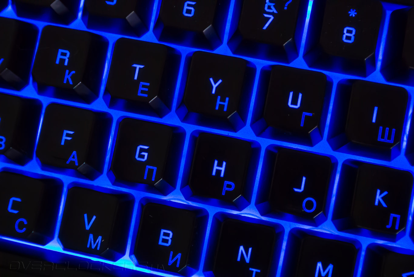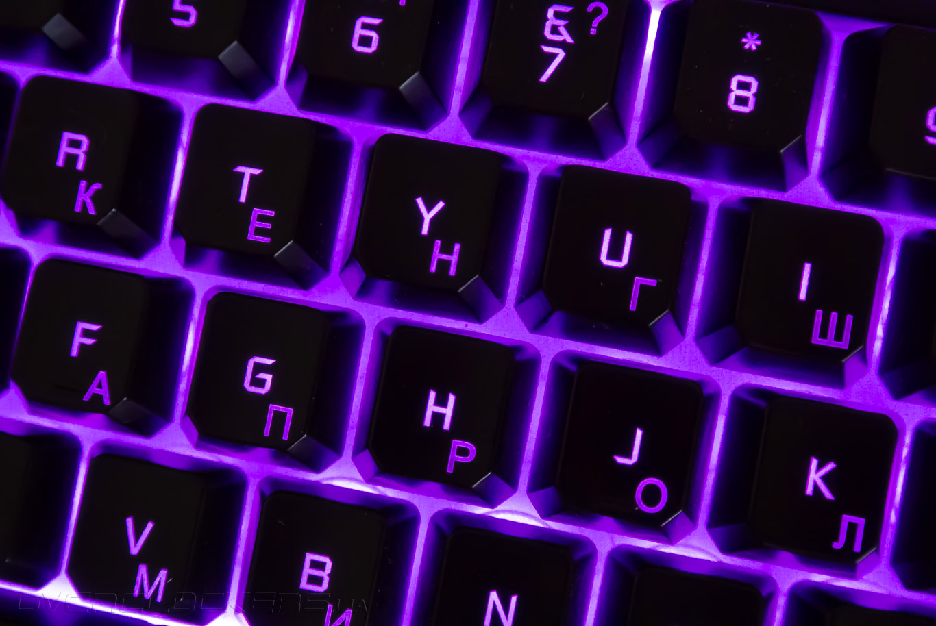 Кириллица имеет свои недостатки. Прежде всего, это выражается в пониженной яркости и контрасте подсветки. Если внимательно присмотреться к клавишам в полной темноте, можно заметить, что отображение кириллицы более тусклое. При достаточном освещении этот дефект менее заметен.