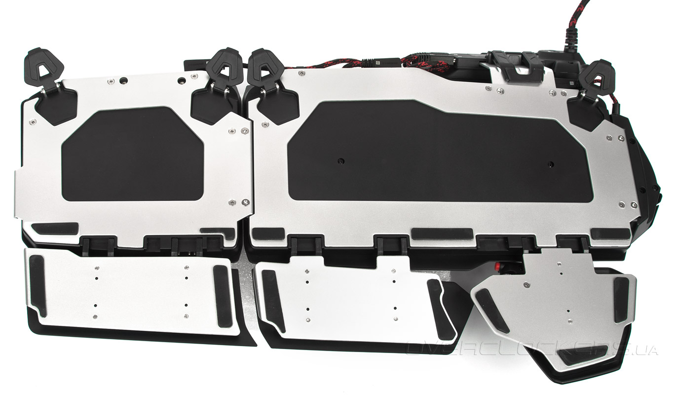 Система подставок под запястья может быть отрегулирована по длине. Это возможно благодаря выдвижным стропам, причём длина каждого сегмента системы настраивается по отдельности. Выдвинутая часть подставки надежно фиксируется в заданном положении и даже в самый разгар игровых баталий случайно сдвинуть панель будет проблематично.