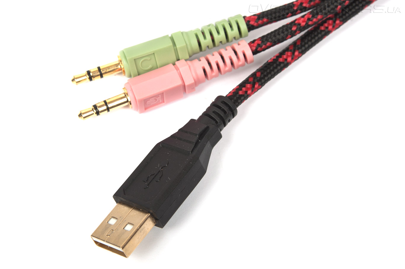 Mad Catz S.T.R.I.K.E. 5 обладает проводным типом подключения. Кабель очень плотный, его длина составляет 1,8 м. Тканевая оплетка защищает провода от механических повреждений. На конце основного кабеля имеется разветвление на один разъём USB 2.0 и два штекера 3,5 мм для подключения к аудиовыходам звуковой карты.