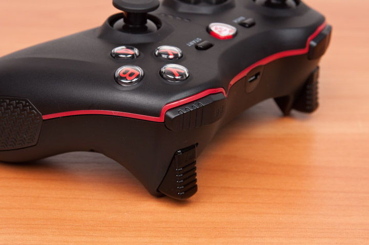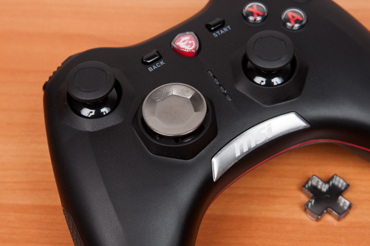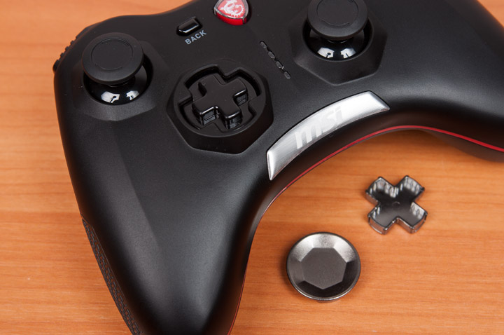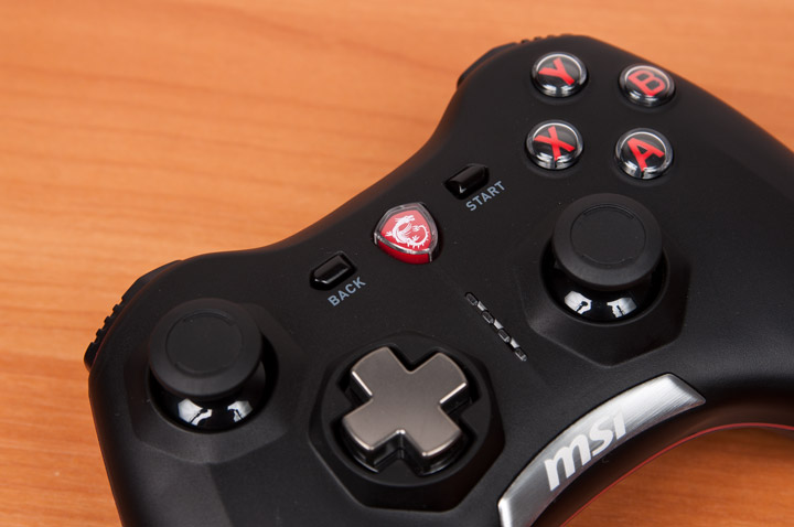 Ручки контроллера MSI сделали более массивными, чем и оригинала и снабдили прорезиненными вставками, чтобы во время игры геймпад не скользил во влажных руках геймера. Они также сходятся под более прямым углом, отчего самый удобный вариант работы с джойстиком это прижать локти к корпусу.