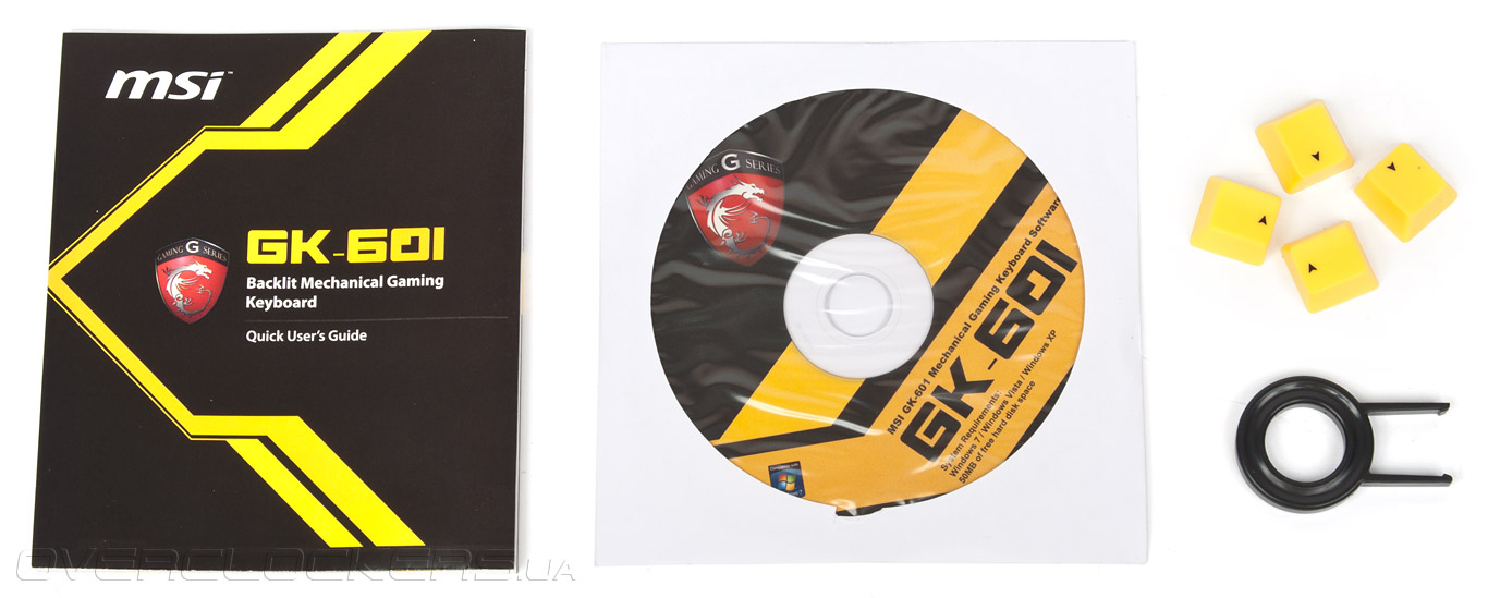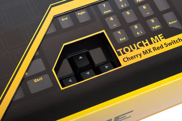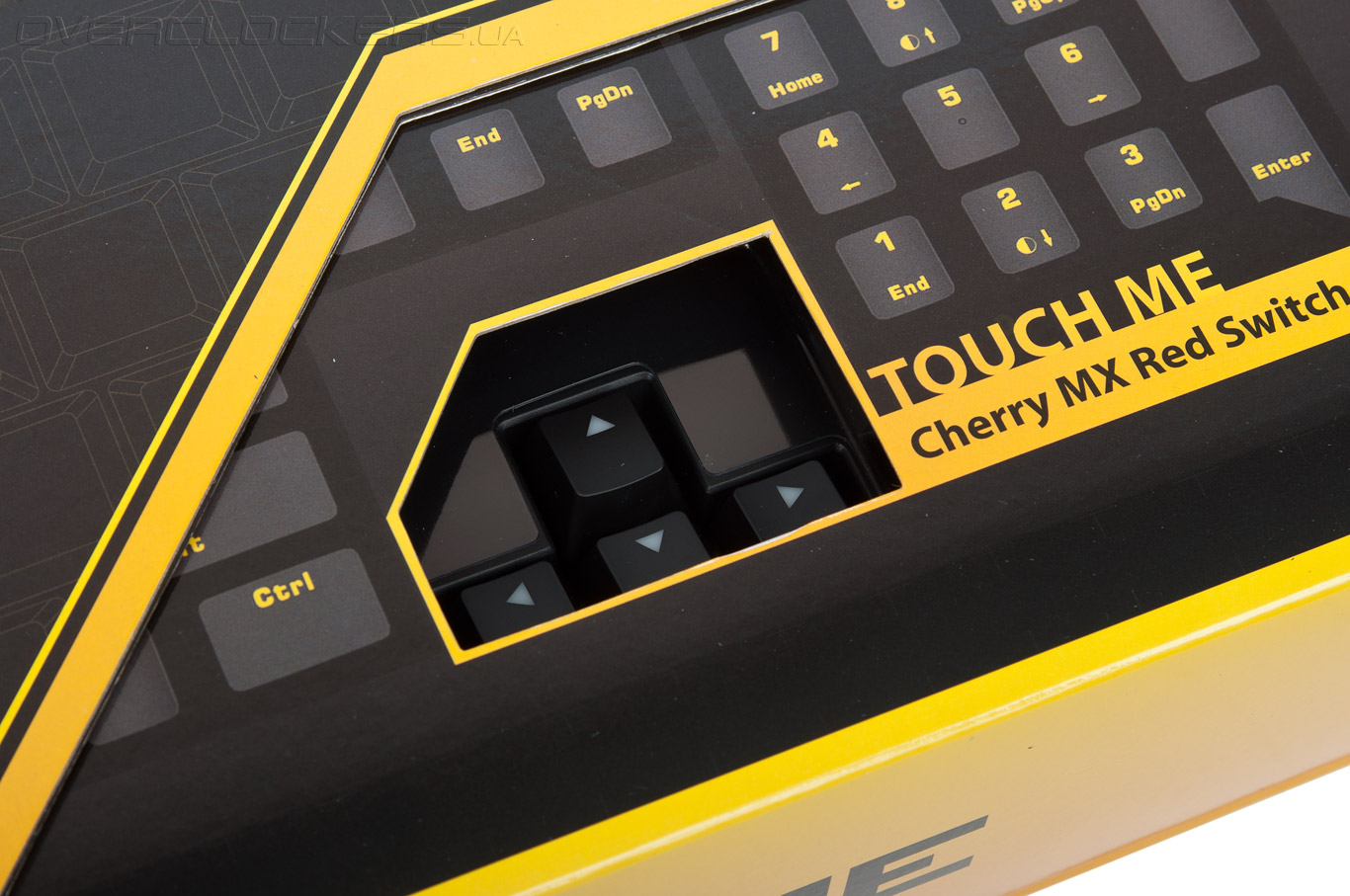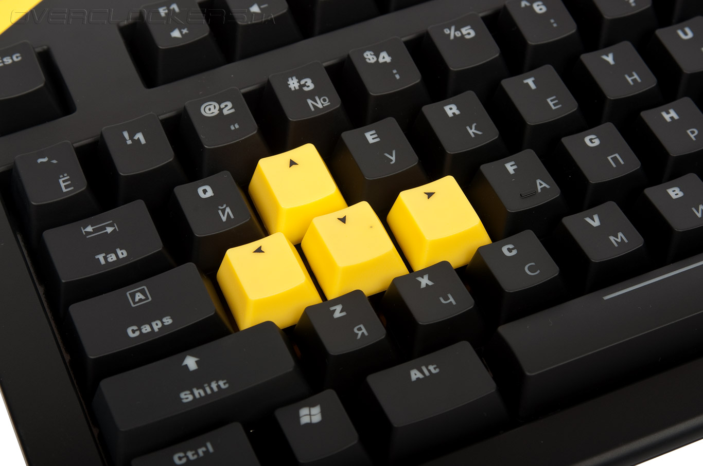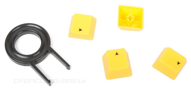 Специально для хардкорных геймеров, производитель включил в комплект поставки четыре сменные клавиши ярко-жёлтого цвета с выгравированными символами в виде стрелок направлений движения.
