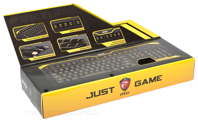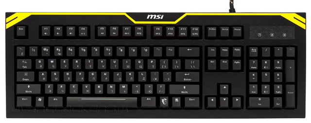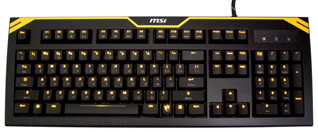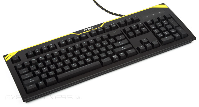 Внешне клавиатура выглядит эффектно. Строгие линии корпуса и минимум декоративных элементов придают устройству солидный внешний вид. Верхнюю панель обрамляют ярко-желтые полосы. Подобного рода оформление присуще видеокартам и материнским платам MSI линейки 2013 года. Для визуального отличия двух моделей, в CK Series задействован насыщенный голубой цвет. Классический форм-фактор, прежде всего, оценят геймеры, не привыкшие подолгу осваивать нестандартную форму корпуса с массой дополнительных клавиш.