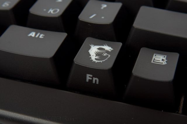 Кнопка Fn заменила правую Win. На лицевой стороне кнопки выгравировано изображение дракона. Активация конкретной мультимедийной функции, выбор профиля, включение игрового режима происходит путём одновременного нажатия Fn и любой кнопки ряда F1–F12.