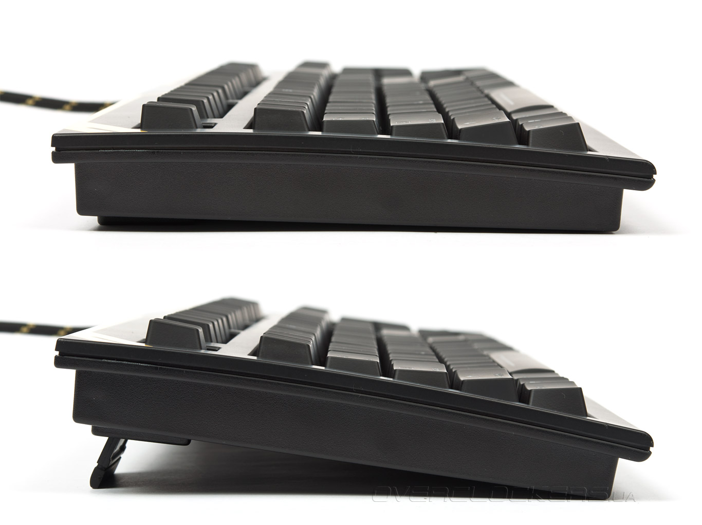 Корпус тяжёлый, его общая масса равна 1,3 кг, что откровенно говоря, впечатляет. Обозреваемый продукт на 100 г легче легендарной Razer BlackWidow Ultimate, и буквально немного уступает в этом показателе классике SteelSeries 7G. Большая масса положительно сказалась прилегании корпуса к рабочей поверхности, случайно сдвинуть клавиатуру с места вряд ли получится.