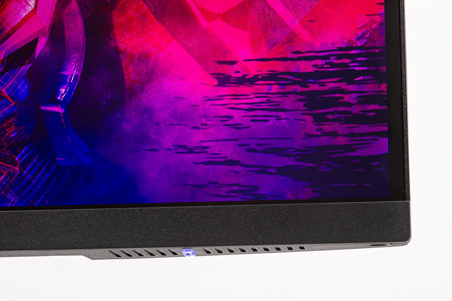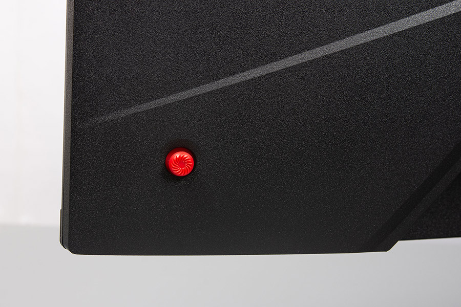 Из декоративных элементов есть только логотип с драконом и глянцевая вставка, которая предусматривает RGB-подсветку, но при фабричных настройках она выключена. Сначала ее необходимо включить в меню монитора, а после уже настроить в фирменном приложении, иначе будет мерцать как бешеная.