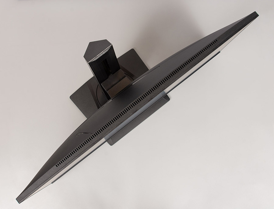 Несмотря на внешний блок питания корпус монитора довольно толстоват, а сверху расположена решетка для вентиляции, чем он сильно напоминает современные модели MSI. Такой же дизайн мы уже видели не один раз при знакомстве с устройствами этого производителя.