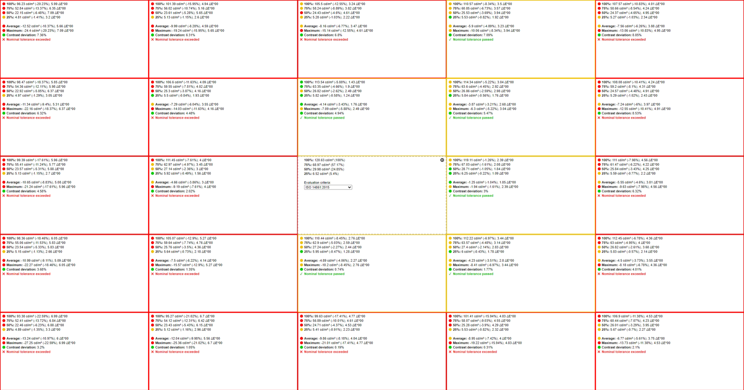 | Максимальная ΔE*00 | 0,9 | 1,5 | 2,38 | 1,5 | 1,19 | 0,89 | 0,96 |