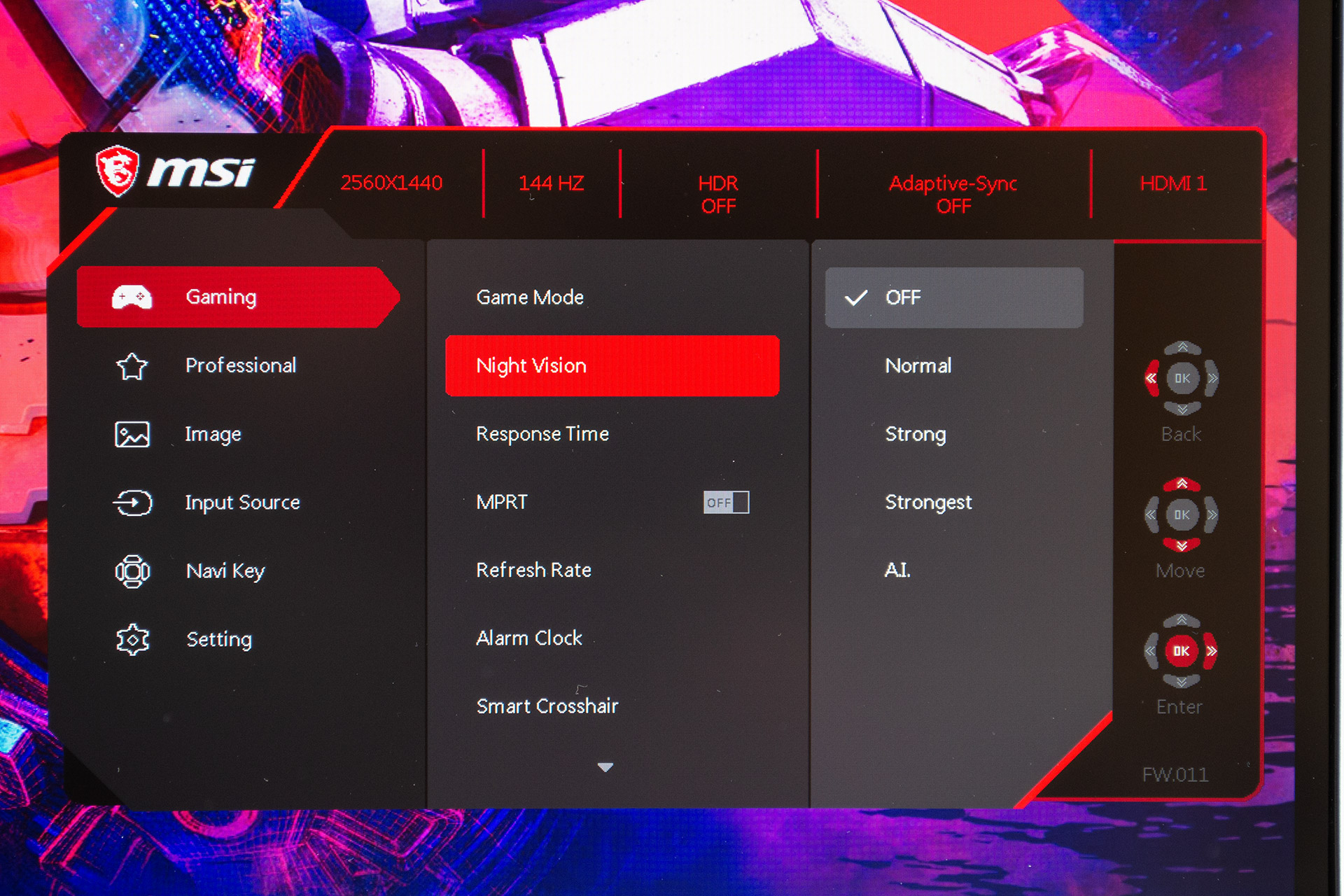 Режим «ночного видения» позволяет выбрать четыре варианта специальных настроек параметров экрана для пользования монитором в темноте.
