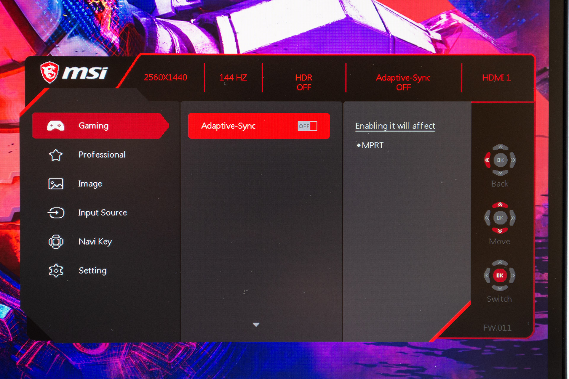 И где-то в конце первого раздела меню скрывается переключатель функции Adaptive-Sync. Который влияет на функцию MPRT.