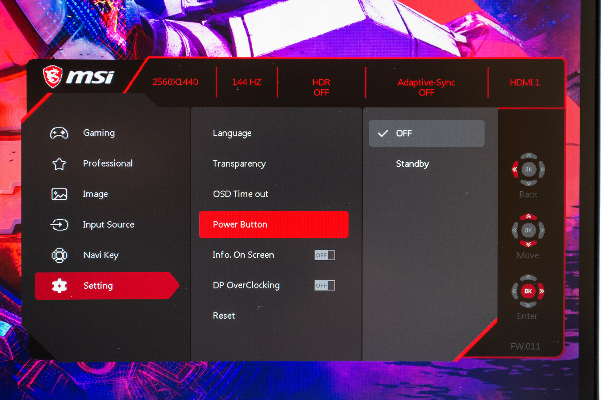 Настроить функцию кнопки питания, вывести постоянную информацию о текущих параметрах на дисплей, разогнать Display Port до максимума или сбросить все на заводские настройки.