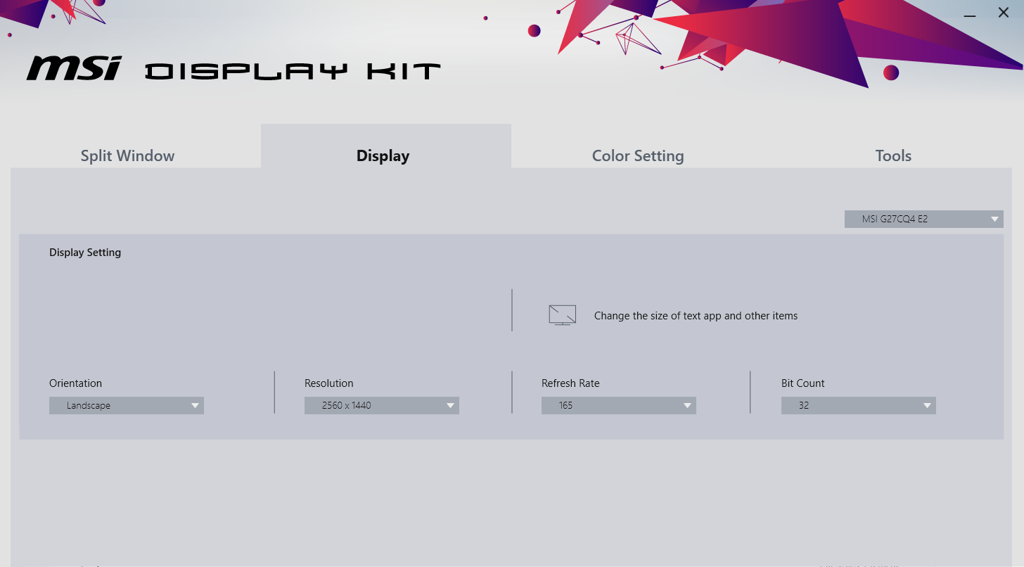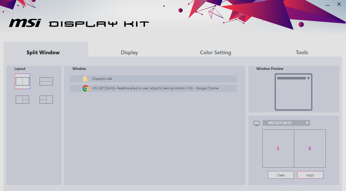 С официальной страницы продукта можно загрузить драйвер монитора с цветовым профилем и небольшое приложение под названием Display Kit (текущая версия 0.0.2.2). В нем можно разделять дисплей на две или три области для отображения только определенных приложений.