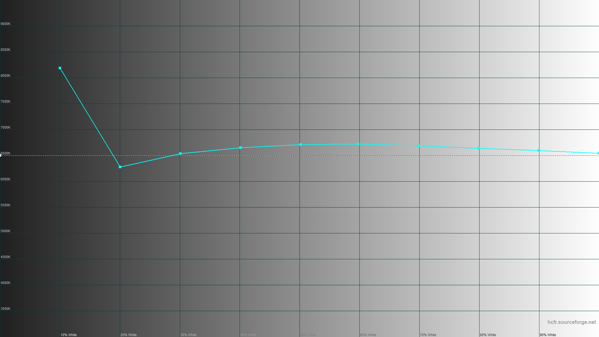 Зато цветовую температуру удалось привести близко к номиналу, хотя бы в диапазоне от 20 до 100% яркости.