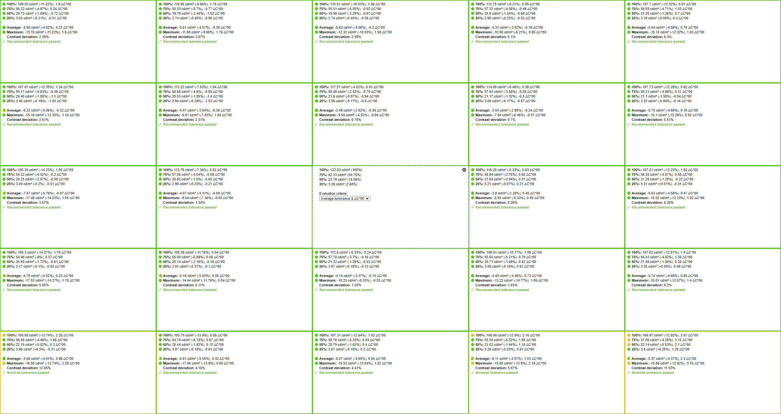 | Средняя ΔE*00 | 2,11 | 0,45 | 0,46 | 0,24 | 0,27 | 0,32 | 0,25 | 0,26 | 0,29 |