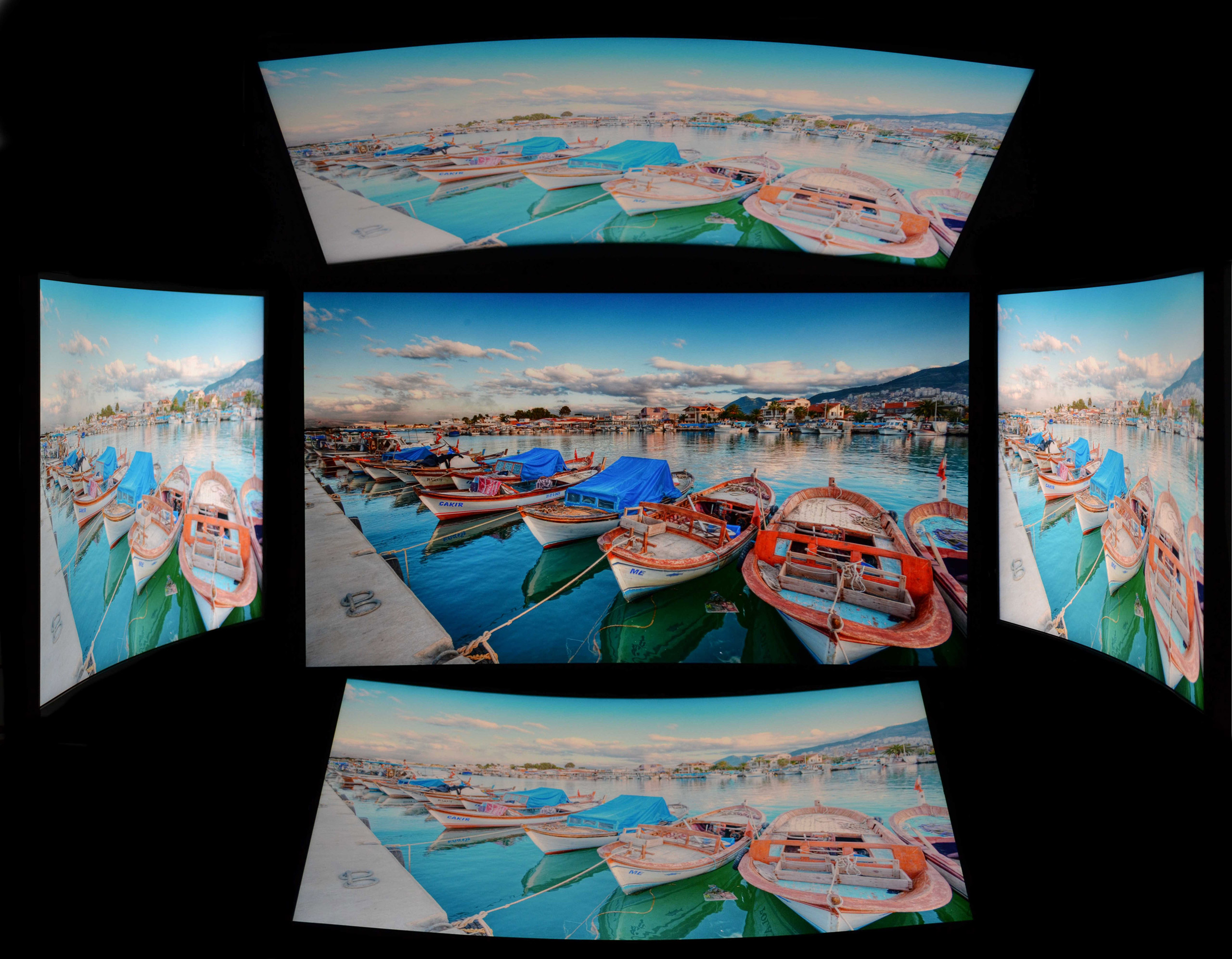 Заявленные углы обзора составляют 178 на 178 градусов. Но есть нюансы, вызванные кривизной экрана. С учетом отражений и искажения центр монитора по горизонтали будет четко виден где-то под 120 градусов. Интересно меняется и яркость подсветки. Под 45 градусами относительно центра она заметно светлеет, а затем сразу начинает возвращаться к начальной яркости по мере увеличения угла зрения. Одним словом, это монитор для эгоистов, потому что просматривать за ним фильмы всей семьей будет неудобно из-за перепадов яркости при взгляде со стороны.