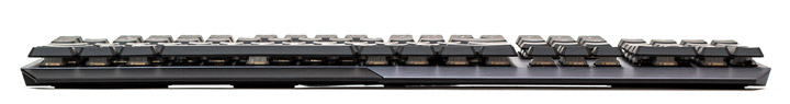 Дизайн клавиатуры выглядит вполне современно и достаточно сдержанно. Верхняя панель изготовлена из серой металлической пластины толщиной 1 мм. Её передняя и задняя грани слегка загнуты, что придает корпусу устройства хорошую прочность на изгиб при относительно небольшом весе в 645 грамм без кабеля. Механизмы переключателей закреплены в пластине в стиле «скелетон».