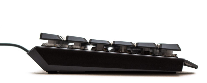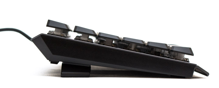 Как воспринимаются низкопрофильные переключатели Kailh уже было частично описано выше. Печатать на них очень хорошо. Но вот для игр не хватает четкости и однозначности отклика. Все-таки от этих механизмов можно добиться и срабатывания без щелчка и даже (довольно редко) щелчка без срабатывания. Слишком большой разброс по ширине зоны активации и сброса переключателя делает их неточными. И это не всегда приемлемо в соревновательных играх. Тем не менее, кнопки здесь обладают отличной стабилизацией, и в целом нажимать их приятно. Так что любителям Cherry MX Blue они вполне могут понравиться как менее громкий, но такой же по тактильной отдаче вариант.