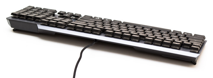 Кабель заходит в корпус клавиатуры сзади посередине и оснащен защитой от перегиба. Дополнительные внешние порты отсутствуют.