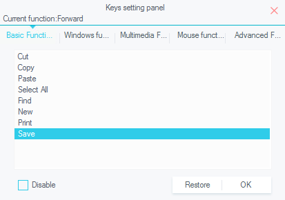Левая кнопка мыши и переключатель разрешения не переназначаются. Зато можно поставить другие команды на правую, среднюю, две боковые клавиши и два направления прокрутки. В перечне команд доступны базовые функции проводника, функции Windows, команды мультимедиа, базовые команды мыши и возможность проиграть звук, открыть файл или директорию, или запустить приложение по нажатию на кнопку мыши. Кроме того, кнопку можно отключить полностью. Возможности записи макросов не предусмотрено.