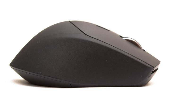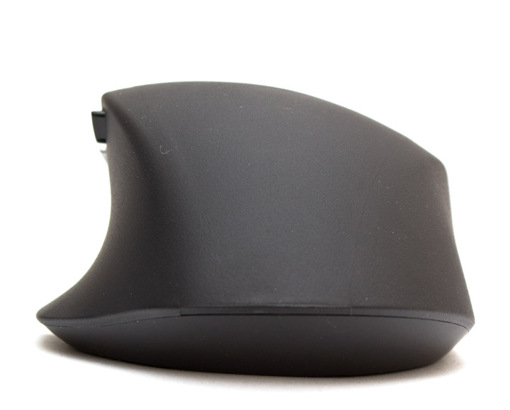 На правой стороне мыши ничего нет, она покрыта таким же, похожим на шероховатую резину материалом, что и левая, и задняя часть верхней панели. Особых упоров под пальцы тут нет, боковина практически прямая.