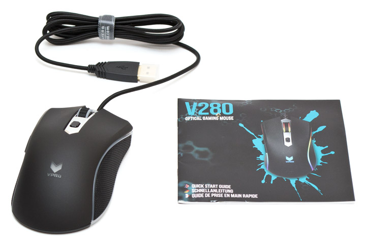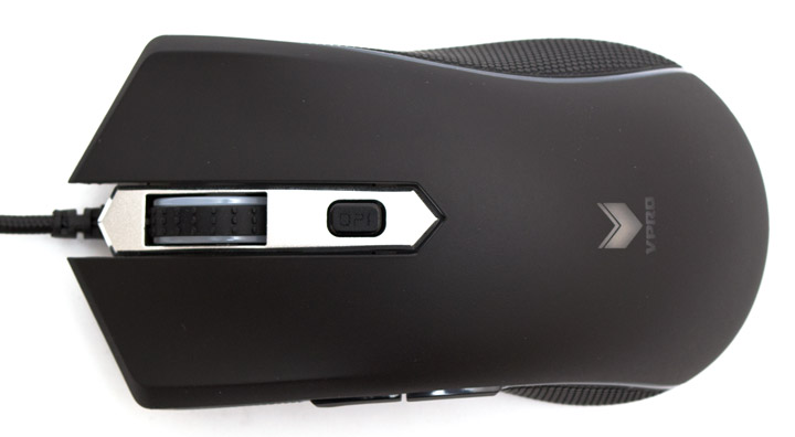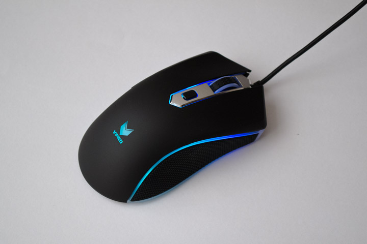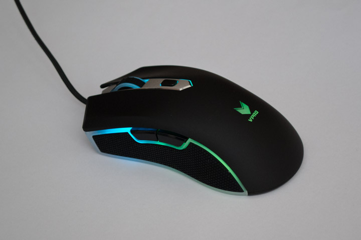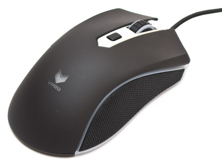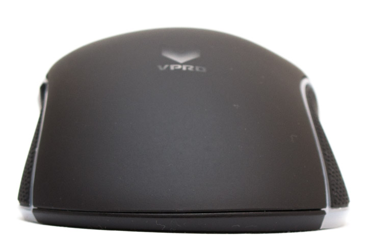 Корма мыши стандартной формы, без неожиданных изгибов. В верхней ее части есть подсвечиваемый логотип VPro.