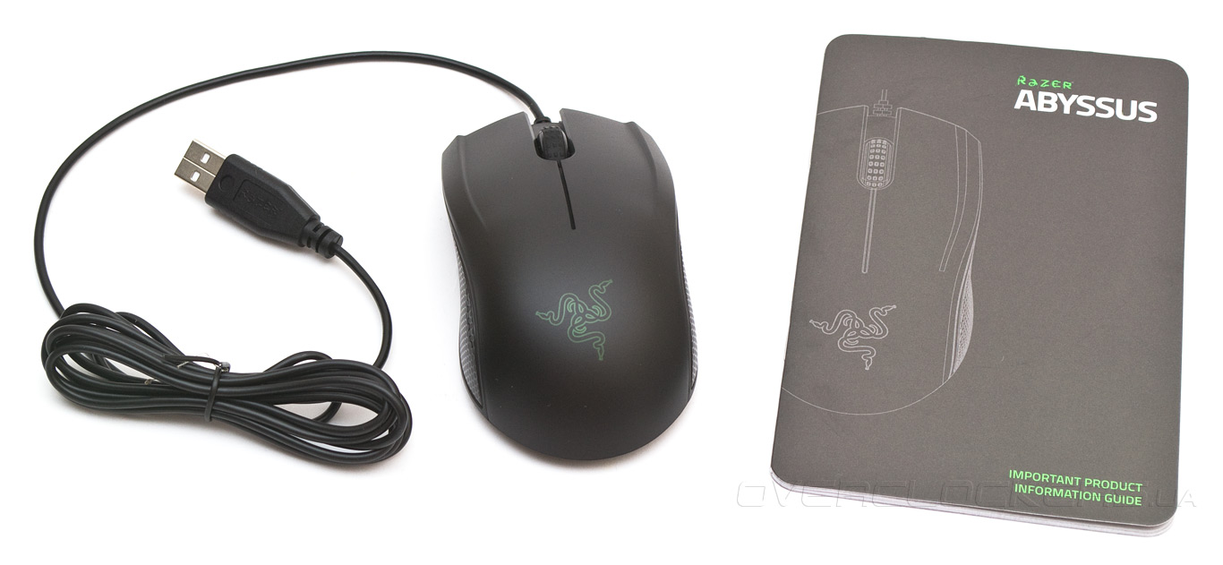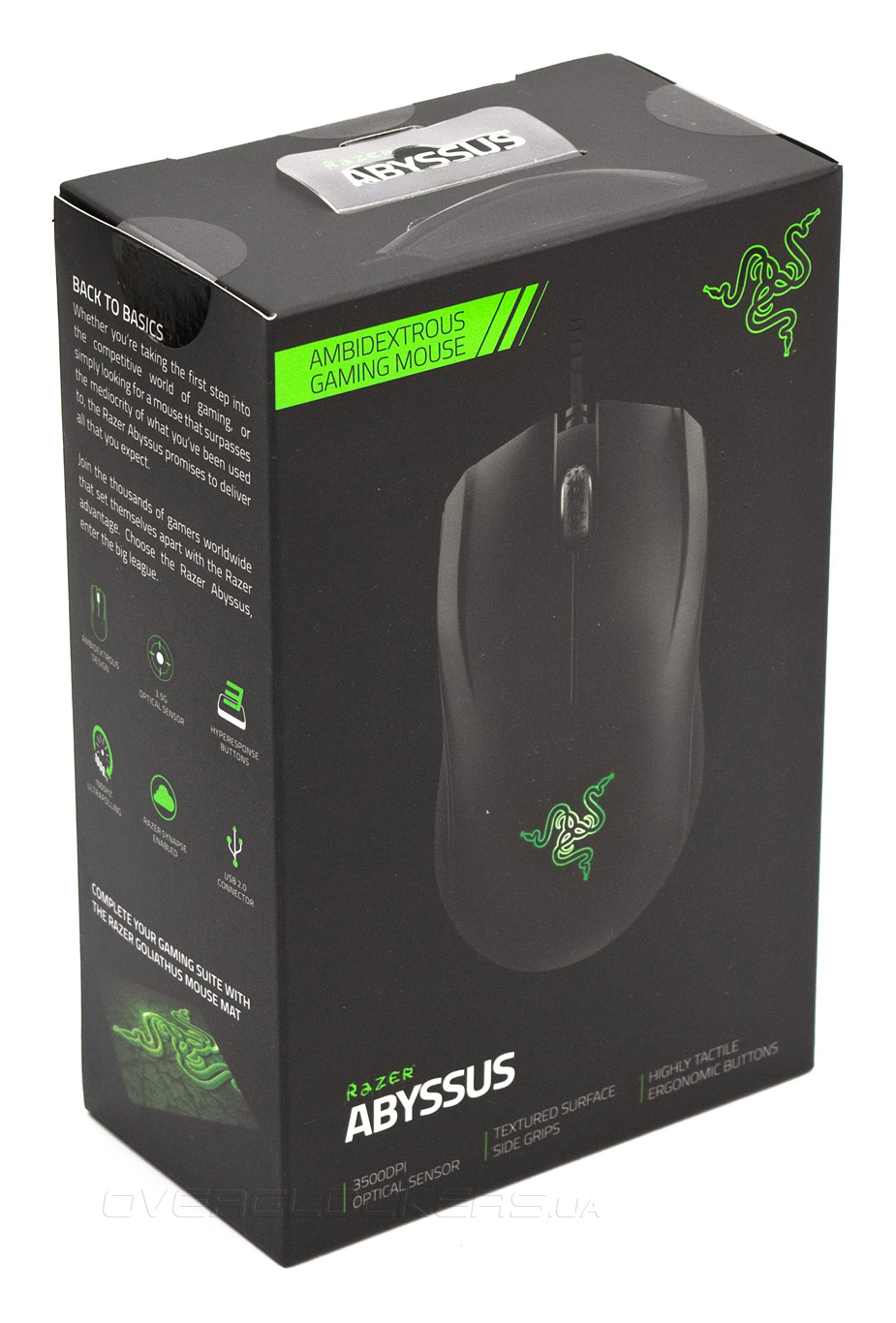 Упаковка Abyssus оформлена в уже ставших привычными для Razer черных и зеленых тонах. На бортах коробки есть изображения продукта и вся необходимая покупателю информация, как маркетингового, так и технического характера. Внутри мышь дополнительно упакована в зеленый и прозрачный пластиковые лотки, которые больше предназначены для защиты от пыли, чем от серьезных механических повреждений.