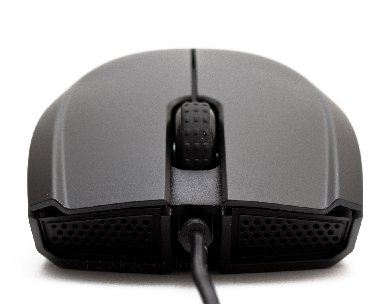 Колесо прокрутки покрыто резиной с рельефом в виде последовательных рядов тройных насечек. Проворачивается мягко, плавно и очень тихо, потрескивая лишь на высоких оборотах. Имеет 24 позиции фиксации, которые практически не ощущаются тактильно. Нажатие на колесо, требуемое для активации средней кнопки, отзывается громким щелчком. Сопротивление нажатию подобрано удачно и является средним — не слишком мягко, но и не туго. Подсветки колесо прокрутки не имеет.