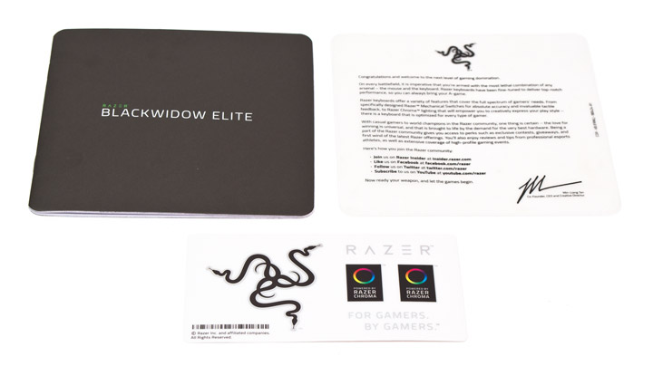 В комплекте поставки есть инструкция, вкладка с поздравлениями от бессменного CEO компании Мин-Лианг Тана и набор из пяти наклеек.