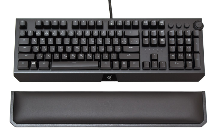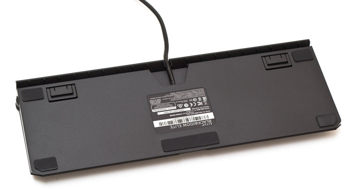 При первом ближайшем знакомстве Razer BlackWidow Elite впечатляет солидностью своей сборки. Это очень крепкая, стабильная и устойчивая клавиатура, которая цепко держится на поверхности стола, независимо от того, разложены ножки или нет. То же самое можно сказать и про ладонную подставку. Хотя они и не закреплена жестко на корпусе, непреднамеренно сдвинуть ее весьма сложно. Мягкое покрытие подставки поднимает руки на комфортную высоту, причем наибольшее удобство достигается в том случае, если ножки сложены и пальцы свободно нависают над кнопками. С моей точки зрения именно правильно сделанная подставка создает и определяет большую часть эргономичности данного устройства. Потому к ней стоит попытаться привыкнуть даже тем, кто обычно подобными подставками не пользуется.