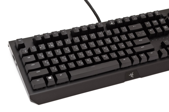 Второй приятный момент в BlackWidow Elite — это характер работы ее переключателей. Я не являюсь сторонником тактильной механики и меня обычно раздражает звук классических Cherry MX Blue. Тем не менее, в этой итерации механизмы Razer Green мне понравились. Они действительно обладают отличной тактильной отдачей, в сочетании с невысокой силой нажатия. Здесь не приходится угадывать момент активации переключателя, поскольку он точно совпадает со щелчком. И, кстати, это именно сухой короткий щелчок, а не стук, не звон пружины и не лязг металла. Можно даже сказать, что в сравнении с привычными тактильными переключателями эти работают чуть тише и с менее раздражающим призвуком. Кроме того, новая линза, встроенная в механизмы, обеспечивает отличную подсветку как кириллицы, так и латиницы, что понравится пользователям, которые не владеют техникой набора текста в слепую. Для тех же кто не смотрит на клавиатуру все тоже привычно, поскольку раскладка полностью стандартная и не требует времени на адаптацию. Из неприятных моментов можно отметить лишь не лучшую стабилизацию длинных клавиш, которая является следствием использования внешних тяг, в не внутренних.
