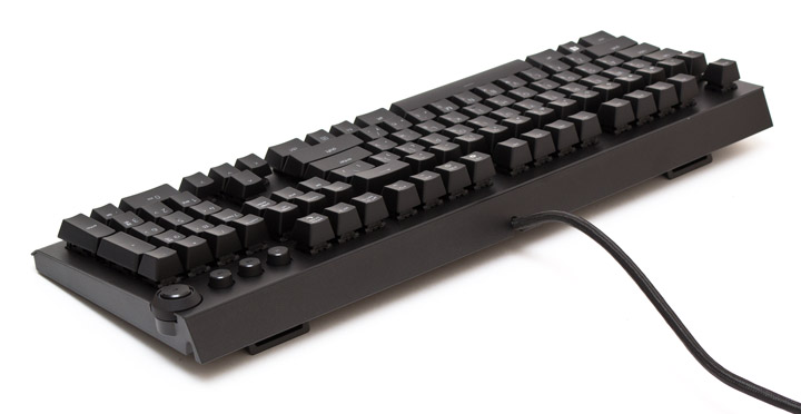 Но есть и пара ложек дегтя. В частности, это внешние стабилизаторы длинных клавиш, которые усложняют процесс демонтажа колпачков клавиш и ухудшают их баланс при нажатии. Колесо прокрутки болтается в вертикальной плоскости. А еще крупный кабель все время норовит выпасть из крепежных направляющих, что доставит неудобства.