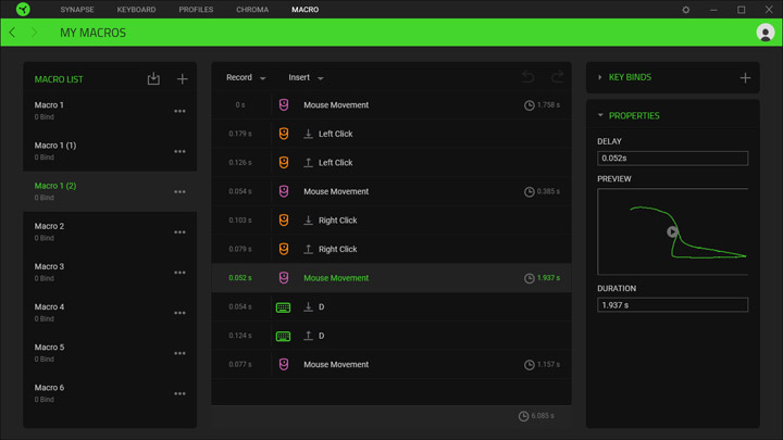 В продвинутом макроредакторе есть собственная библиотека макросов, которым можно присваивать индивидуальные названия. Для записи доступны команды клавиатуры и мыши, а еще запись траектории движения курсора и настройки всех вариантов временных задержек и способов воспроизведения команд.