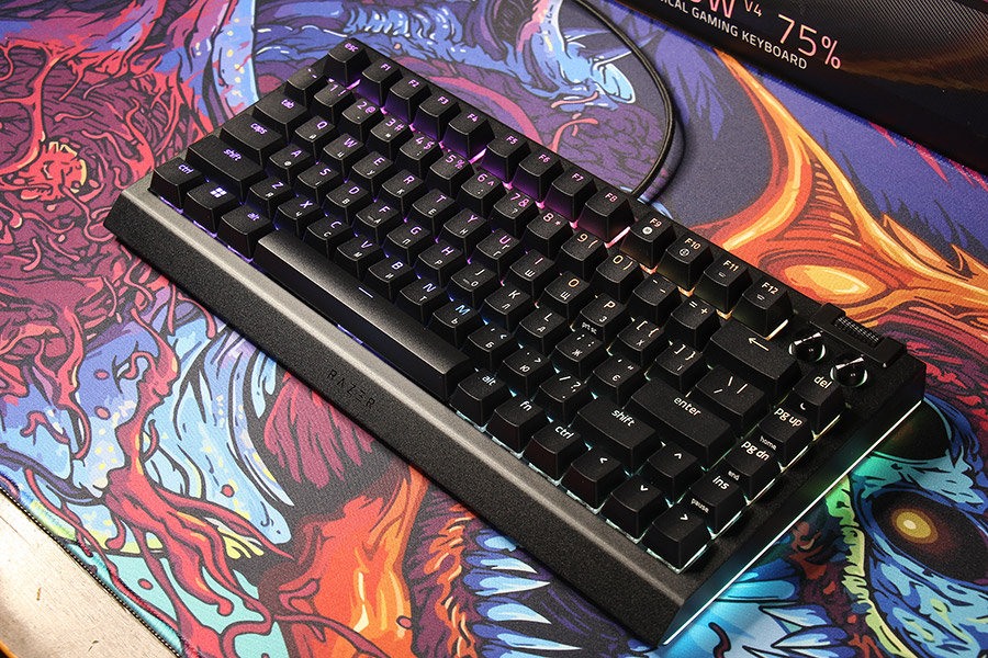 Несколько неожиданно и контринтуитивно, Razer Blackwidow V4 75% технически сильно отличается от других моделей четвертого поколения Blackwidow, включая более дорогую полноразмерную V4 Pro — дизайн у них одинаковый, но хот-свап присутствует только у 75%! Что касается в целом нынешних клавиатур Razer, то имеются четыре линейки: самая простая Ornata V3 (даже не механическая), киберспортивная Huntsman V3 с аналоговыми переключателями, Deathstalker V2 для поклонников низкопрофильных клавиш и, собственно, самая универсальная серия Blackwidow V4 от бюджетной V4 X до Pro. К сожалению, бренд не торопится с беспроводными версиями. Скажем, компактная Blackwidow V3 Hyperspeed до сих пор является актуальной на сайте производителя, хотя относится к предыдущему поколению — замены среди V4 пока нет.