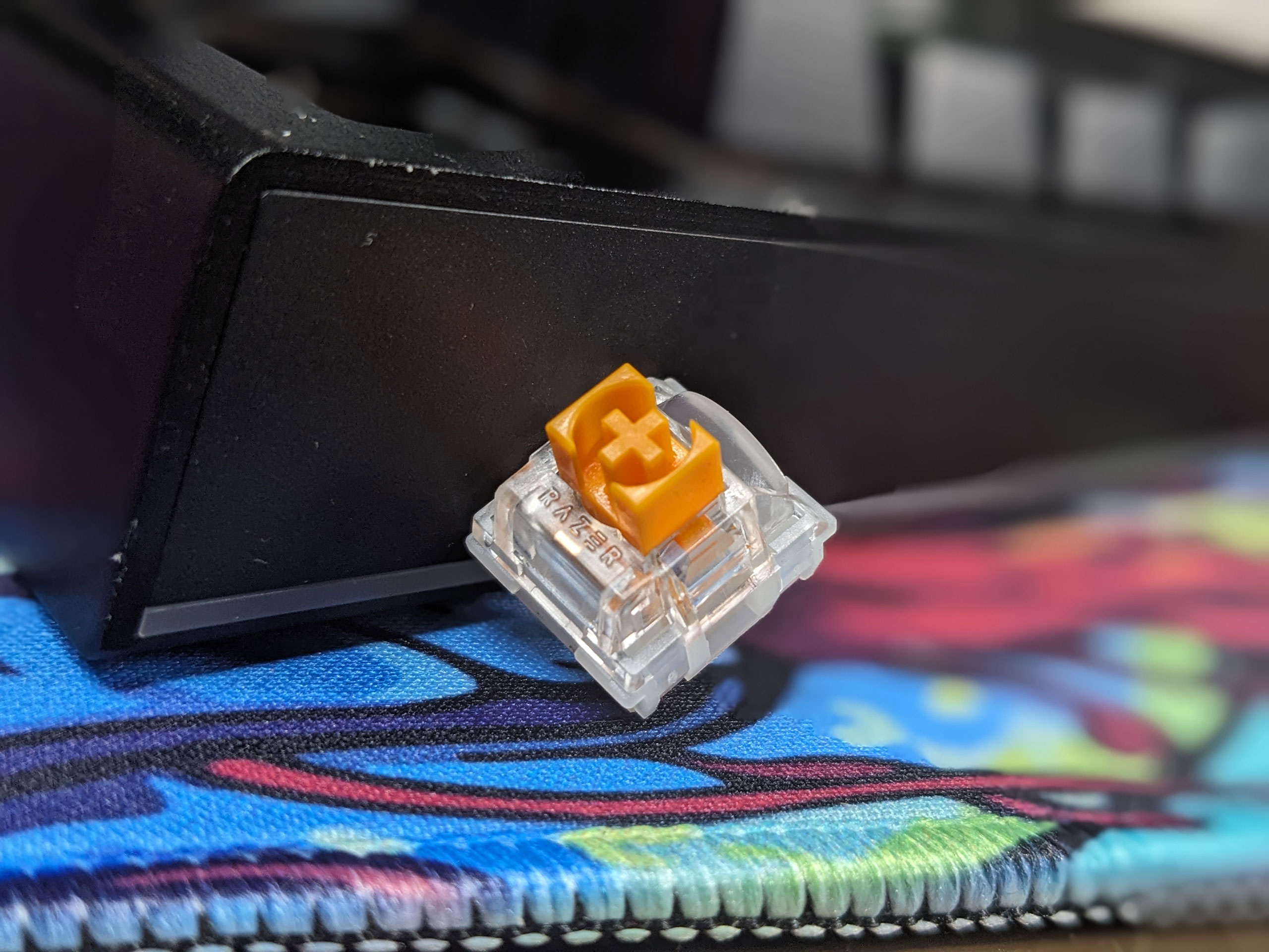 Так же за пределы обычного обзора клавиатуры выходит и самая горячая тема — выбор переключателей для замены родных, ведь Blackwidow V4 75% позволяет это делать впервые в истории Razer. С завода клавиатуру комплектуют и так интересными переключателями: Razer Orange третьего поколения, одновременно тактильными и тихими (причем именно тихими, но не бесшумными). Производитель, конечно, предлагает на замену свои изделия в виде линейных Razer Yellow и кликовых Razer Green, но клавиатура совместима с любыми 3- или 5-контактными переключателями типа Cherry MX.