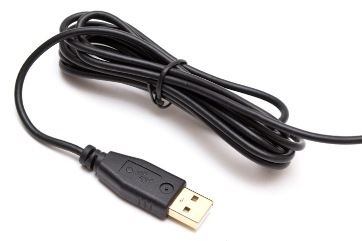 Сигнальный USB-кабель имеет длину в 2,1 метра и лишен оплетки. Он средний по толщине, достаточно мягкий и гибкий. Заданную форму держит неохотно. Разъемы в коннекторе позолочены.