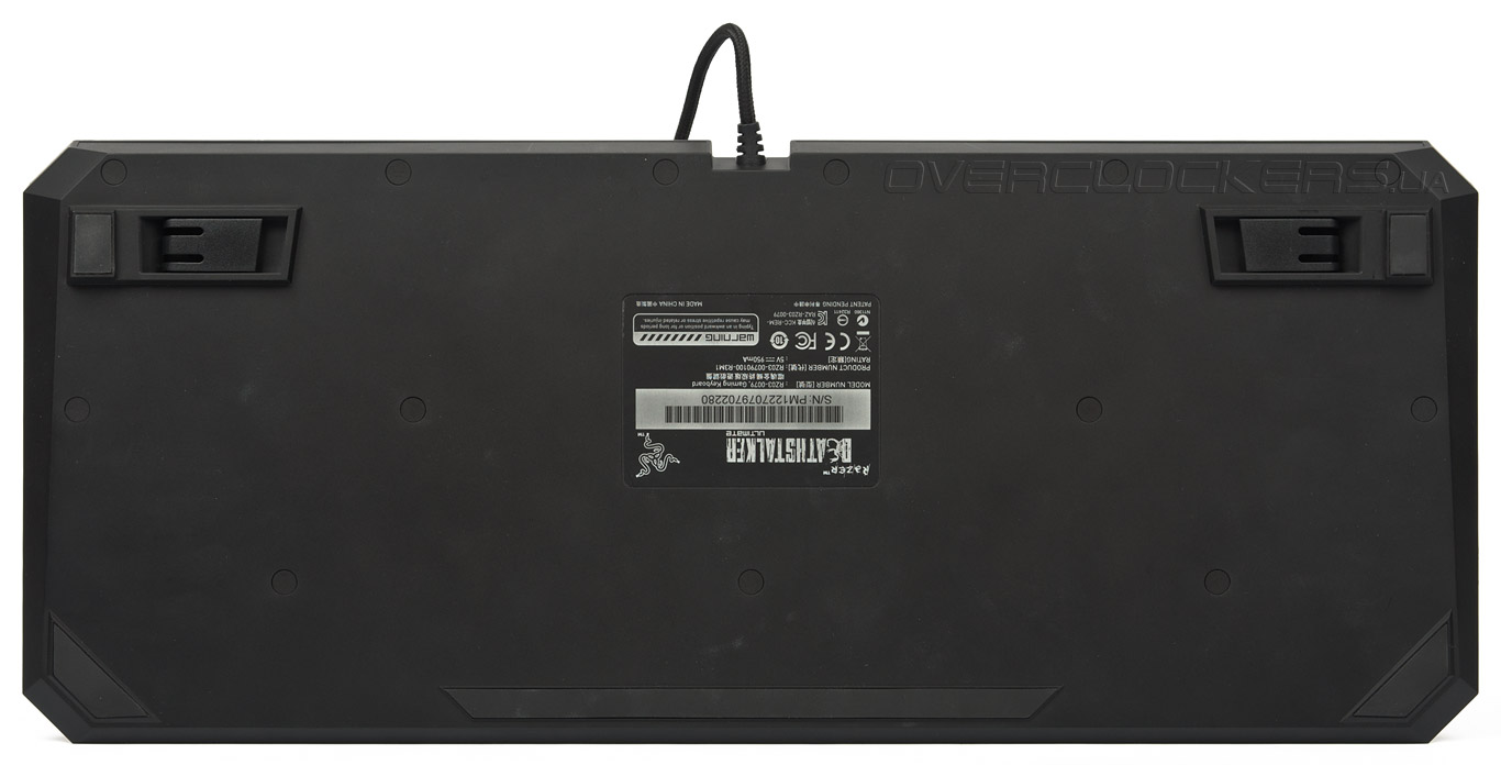 Днище DeathStalker Ultimate украшают три прорезиненные накладки, надёжно фиксирующие клавиатуру на рабочей поверхности.