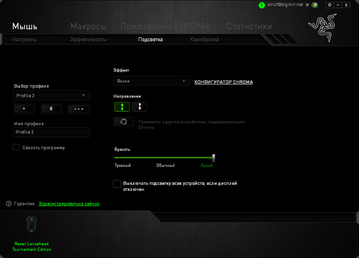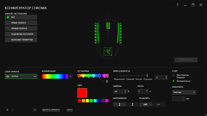 Конфигуратор Chroma позволяет осуществлять гораздо более тонкую раздельную настройку параметров всех зон и эффектов подсветки и устраивать с помощью мыши настоящие световые шоу.