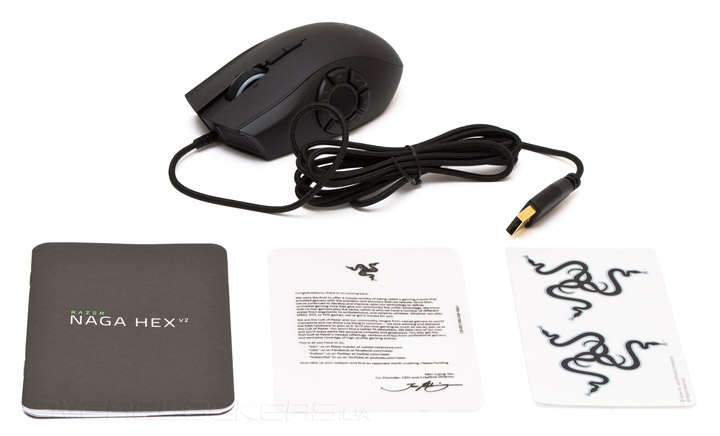 Комплект поставки весьма скромен: мышь, инструкция, две наклейки с логотипом компании и традиционный листочек с обращением от президента Razer — Мин-Лианг Тана. Дно манипулятора заклеено пленкой в транспортном положении.