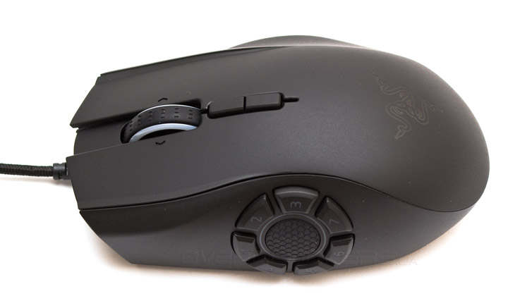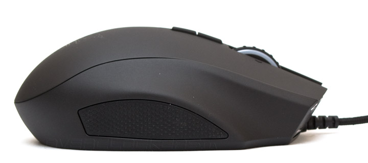 Слева на мыши, точно посередине, в виде круга располагается семь пронумерованных дополнительных клавиш. В центре круга есть резиновая вставка, в которую можно упереть подушечку большого пальца. Держится он там не очень уверенно и со временем возникает желание сместить палец пониже, в район кнопок «1» и «4». Кстати, глядя на это, встает закономерный вопрос — почему маркетологи решили назвать модель Hex, если кнопок здесь на самом деле семь? Naga Seven звучало бы ничем не хуже.